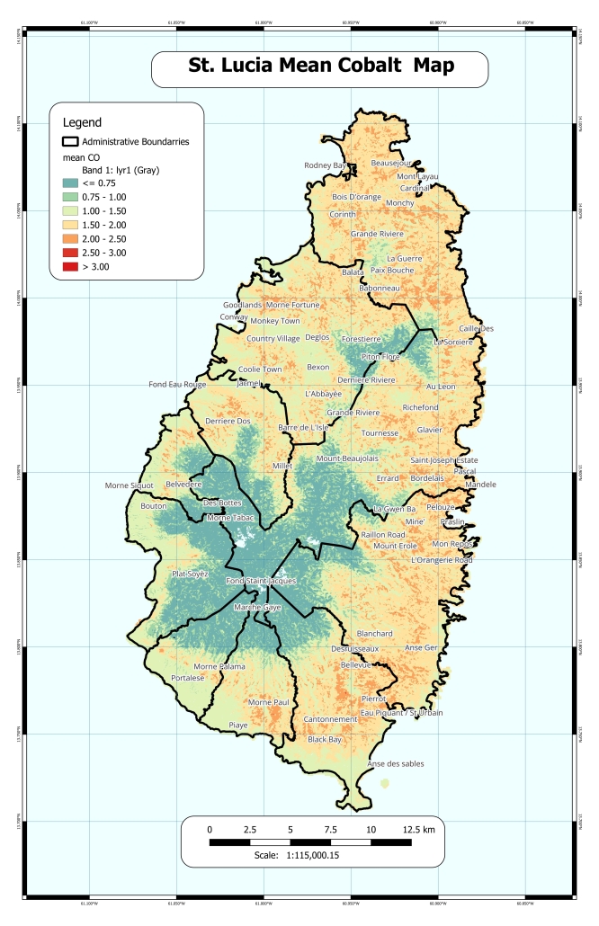 St. Lucia Mean Cobalt Map (2024)